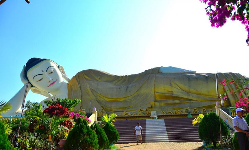 Cet après-midi commence par une visite de la pagode Thanboddhay, un colossal temple bouddhiste décoré à l'intérieur de plus de 500.000 images du Bouddha. Arrêt également à la pagode Boditahtaung qui abrite la plus grande représentation du Bouddha couché en Birmanie, avec ses plus de 100m de long et 27m de haut. A proximité se trouve le plus grand Bouddha debout dans le monde, LaykyunSetkyar, avec ses 129m de hauteur.