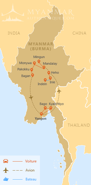 Yangon - Mont Kyaiktiyo - Bago - Yangon - Lac Inle - Mandalay - Mingun - Monywa - Pakokku - Bagan - YangonÀ ne pas manquer