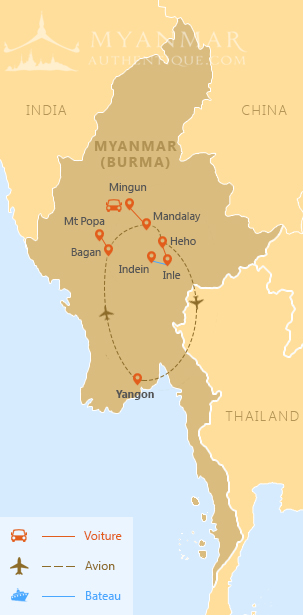 Yangon - Bagan - Mandalay - Mingun - Mandalay - Lac Inle - Yangon
