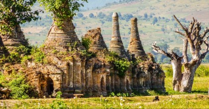 Nous irons visiter le marché local du matin, l'insolite "marché des 5 jours". Marché itinérant qui se déplace quotidiennement selon un planning de 5 jours. Découvrez le village Indein sur les rives occidentales du lac Inle, après une traversée en bateau d'une heure à travers un canal étroit. Une courte promenade vous mènera à un site archéologique étonnant, ensemble monumental de centaines de petits stupas dorés vieux de 1500 ans, entremêlés de ruines de temples construit en briques,au beau milieu d'une végétation qui avait repris ses droits. vous aurez également une magnifique vue du lac en contrebas.