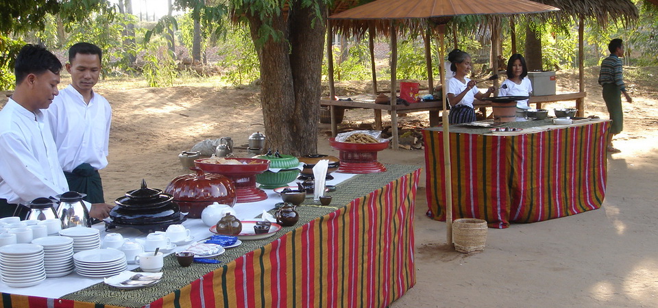 Alors atteindre le monastère du village où, à l'ombre des arbres, une table est dressé avec des plats légers traditionnels, thé et café. Ceci est une pause idéale pour cette journée d’essayer de nouveaux aliments et profiter des rafraîchissements dans un cadre unique en Birmanie.