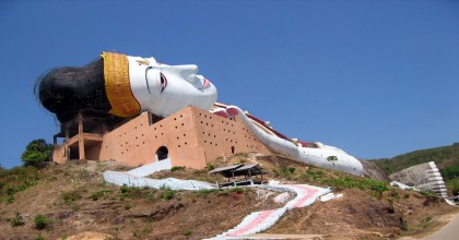 Ensuite, nous irons au village de Myaing Gone pour y contempler une la statue de Bouddha en position allongée la plus grande au monde. C’est une structure creuse dans laquelle les gens peuvent déambuler et voir des sculptures représentant la vie de Bouddha et des contes morales bouddhiques.